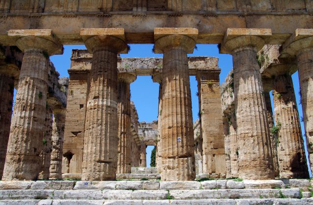 Paestum was a Greek city and you can admire: The Tample of Hera, the temple of Athena, the famous painted tombs among which is the famous Tomb of Diver. A lot of vases, kraters, figures, statues and decorations of the temple that depict mythological scenes are preserved in the Paestum Archaeological Museum.